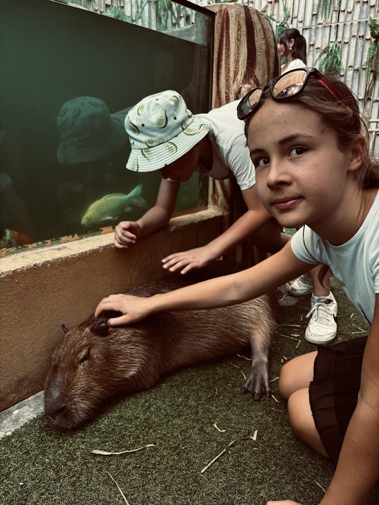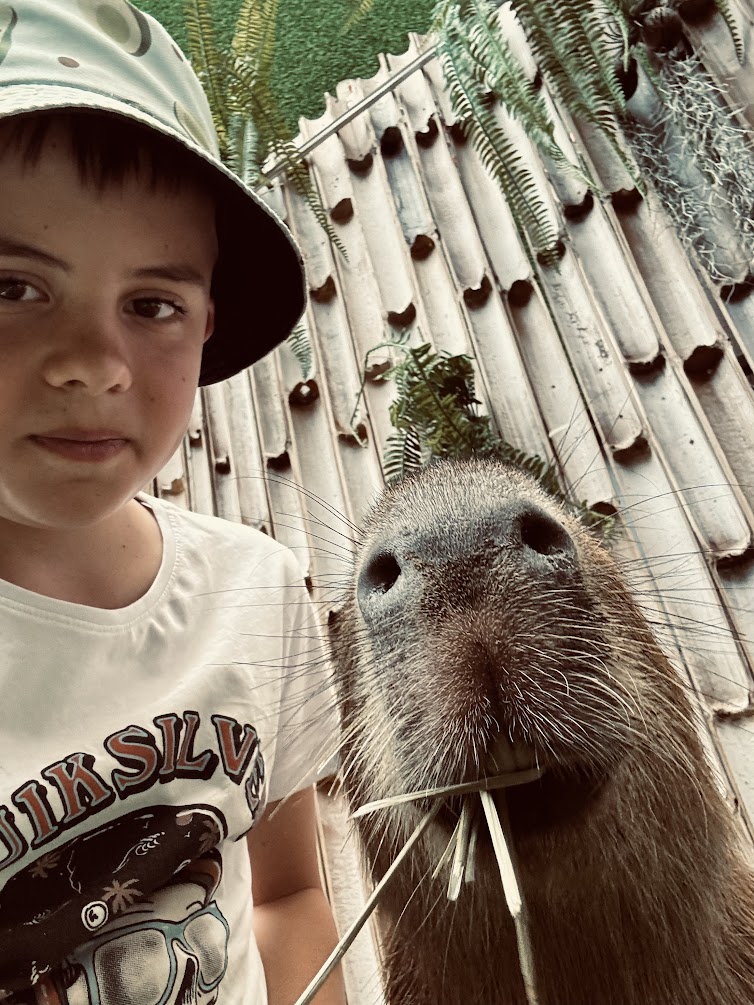 Wiedzieliście, że kapibary w dotyku podobne są do dzików? Czyli wcale nie mięciutkie. Czy kapibary były zainteresowane dziećmi? Średnio. Wrażenia więc takie, że fajnie byli i już więcej nie muszą.