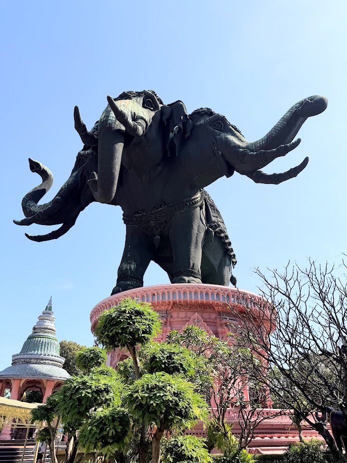 Muzeum słynie z ogromnej rzeźby trzygłowego słonia, wewnątrz którego znajdują się wystawy. Muzeum podzielone jest na trzy poziomy. Najniższy poziom, zwany Suvannabhumi, zawiera wystawy chińskiej porcelany oraz historię budowy muzeum. Drugi poziom (umieszczony w różowym piedestale) to „Ludzka Ziemia”. Wnętrze budynku łączy w sobie wiele form sztuki z całego świata, w tym sztukę Wschodu i Zachodu, w naprawdę unikalnej formie.Trzeci, najwyższy poziom umieszczony w brzuchu słonia to „Niebo”, zawiera liczne posągi Buddy z różnych epok, a ściany i sufit pomalowane są w sposób przypominający nam kosmos.