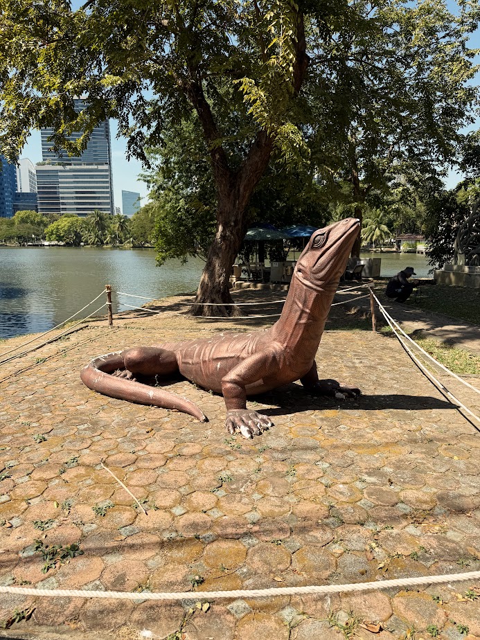 Park Lumpini to jeden z większych parków w centrum Bangkoku. Znajdziecie tam jeziorko, gdzie można popływać łódkami, plac zabaw, liczne siłownie, grające fontanny, kilka ciekawych pawilonów oraz całą masę waranów. Warany w Parku Lumpini doczekały się nawet własnego pomnika. I właściwie tylko po to, żeby zobaczyć warany pojechaliśmy w to miejsce. W ciągu zaledwie pół godziny spotkaliśmy ich kilkanaście.
