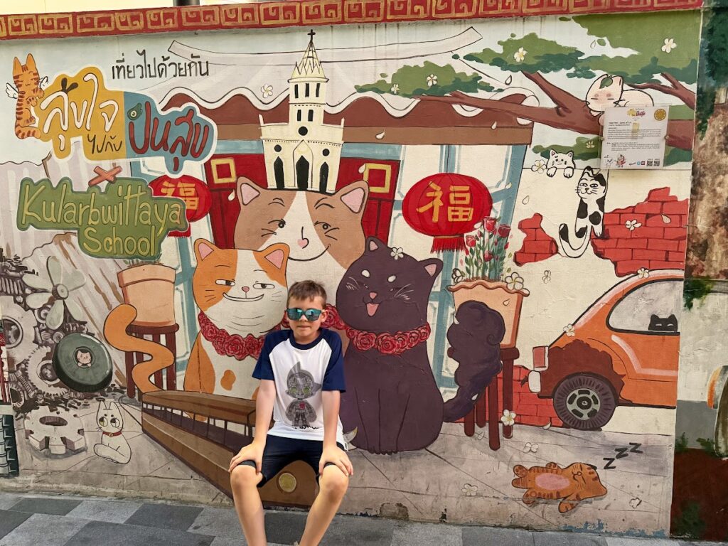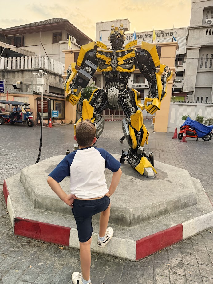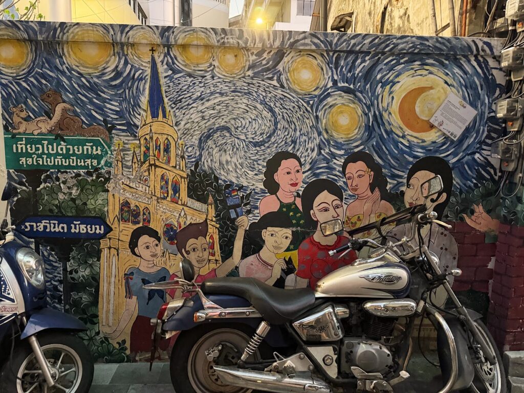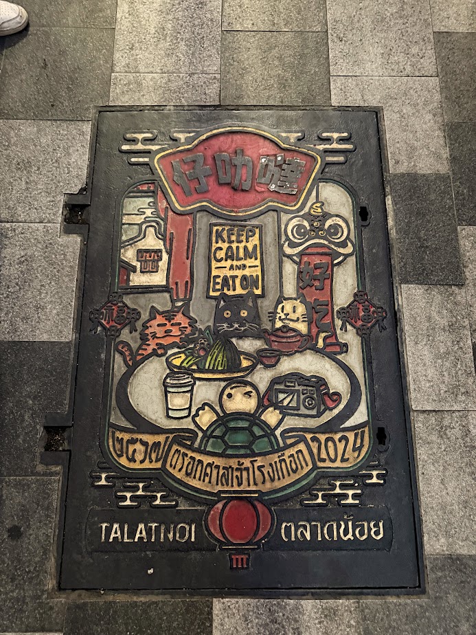 Do Talat Noi dotarliśmy pod koniec naszego drugiego dnia w Bankgkoku. To właściwie ulica czy dwie wzdłuż, których możemy podziwiać przeróżne kolorowe murale. Do tego ciekawe płyty do kanałów, stare zardzewiałe autko i transformersy na środku skrzyżowania.