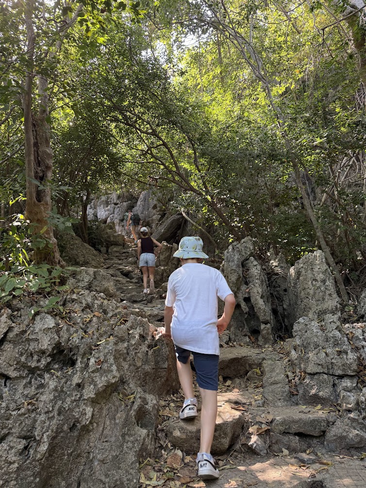 Żeby dostać się do jaskini czeka nas 2 km trekking. Nie jest to łatwa trasa, szczególnie biorąc pod uwagę temperaturę powietrza, ale widzieliśmy na swojej drodze zarówno dzieci jak i osoby starsze, więc sami musicie oszacować wasze możliwości. Trasę można podzielić na trzy odcinki: