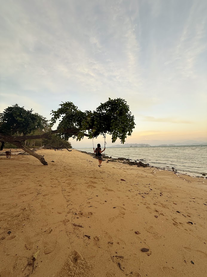 Kilka minut spacerem od naszego domku znajduję się malutka wysepka o nazwie Koh Nui (albo Koh Nok), na którą przy odpływie można dojść wzdłuż pasa piachu. Spacer o różnych porach dnia był dla nas obowiązkowy.