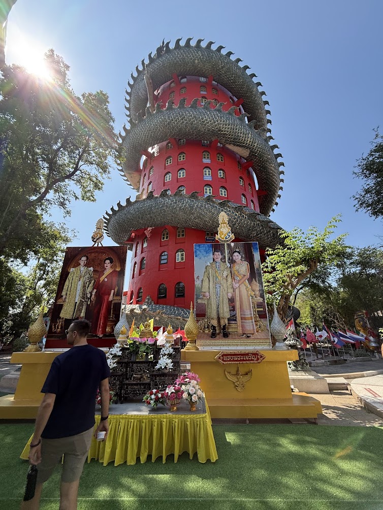 Słynna, ale też trochę kontrowersyjna świątynia buddyjska znajdująca się ok 1 godzinę drogi z Bangkoku. Wiele osób zahacza o nią jadąc dalej na zachód do Kanchanaburi, więc my nie byliśmy jedynymi, którzy tak zrobili.