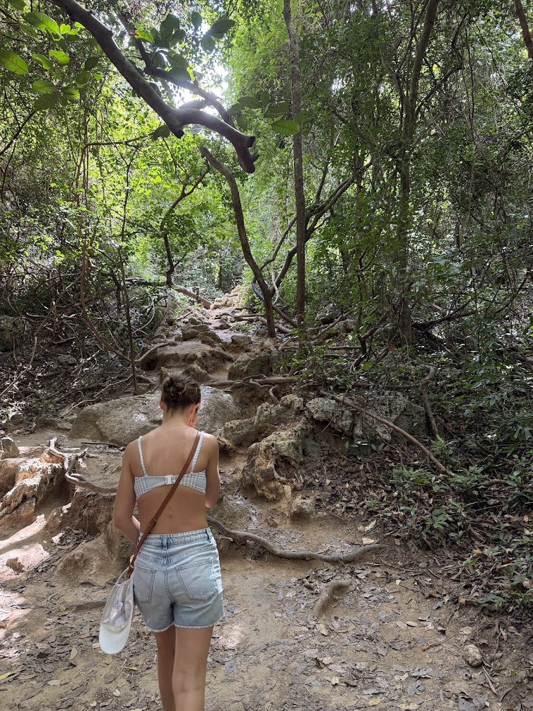 Całość trasy do poziomu 7 to w sumie ok 2 km, więc nie daleko, ale dotarcie tam zajęło nam ok godzinę. Kąpaliśmy się w kolejnych wodospadach schodząc w dół.