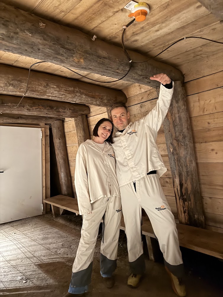 Ale zanim jeszcze rozpoczniemy zwiedzanie, będziemy musieli ubrać się w obowiązkowe białe kombinezony. W kopalni panuje stała temperatura 10 stopni, więc latem pamiętajcie, żeby się grubiej ubrać. Na miejscu są darmowe szafki, gdzie można zostawić plecaki czy kurtki.