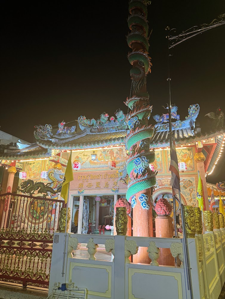 Samo miasto Surat Thani nie ma zbyt wiele do zaoferowania. Zazwyczaj turyści ruszają prosto z lotniska albo do Khao Sok, albo na wyspy takie jak Koh Samui. My w Surat Thani spędziliśmy jedną noc, bo droga z Hua Hin była zbyt długa, żeby dotrzeć do Khao Sok w ciągu jednego dnia. Wieczorem mieliśmy czas jedynie na krótki spacer do pobliskiej świątyni oraz obowiązkowy Street Food Nightmarket.