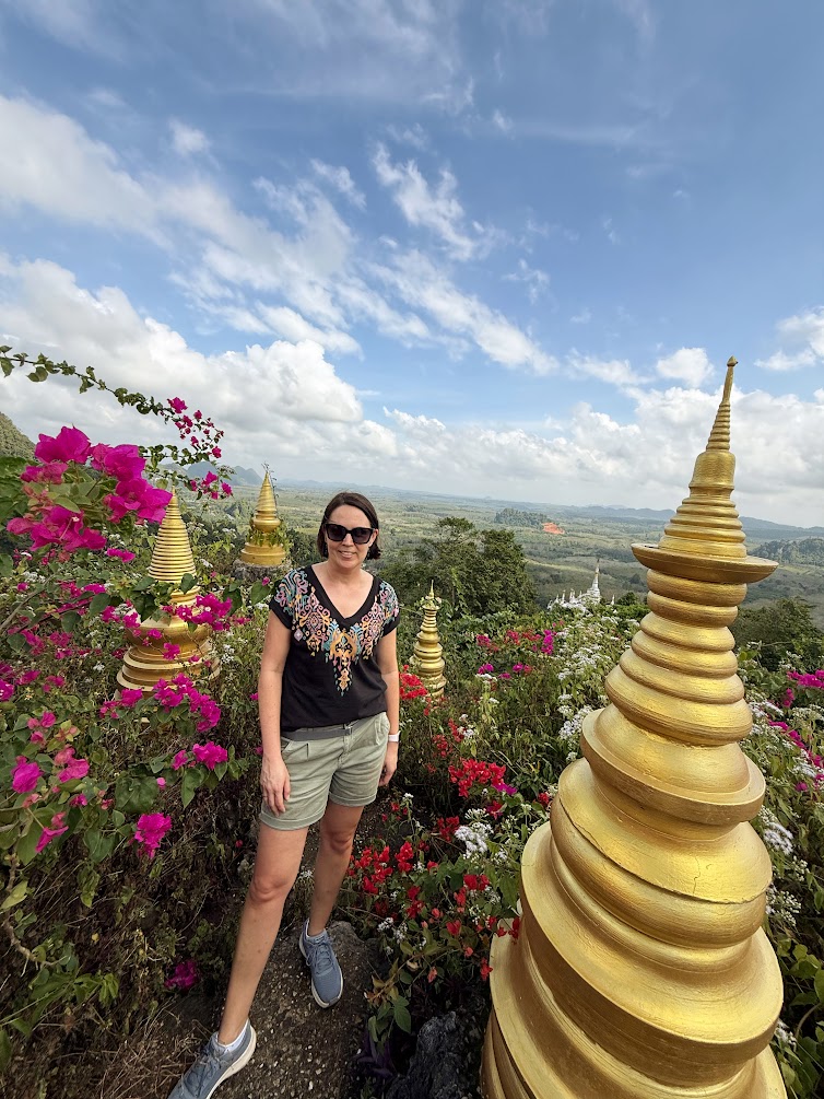 Nam udało się dotrzeć do czterech świątyń (Tomkowi do pięciu). Wejścia na pierwszy szczyt nie udało nam się znaleźć, ale wspięliśmy się dzielnie na kolejne szczyty, gdzie wybudowano kolejne stupy buddyjskie. Z każdej z nich rozpościera się piękny widok na okolicę. Na szczęście dla nas pomiędzy szczytami od trzeciego do szóstego wybudowano mosty, tak więc nie musimy schodzić na dół, żeby dostać się do kolejnej świątyni.